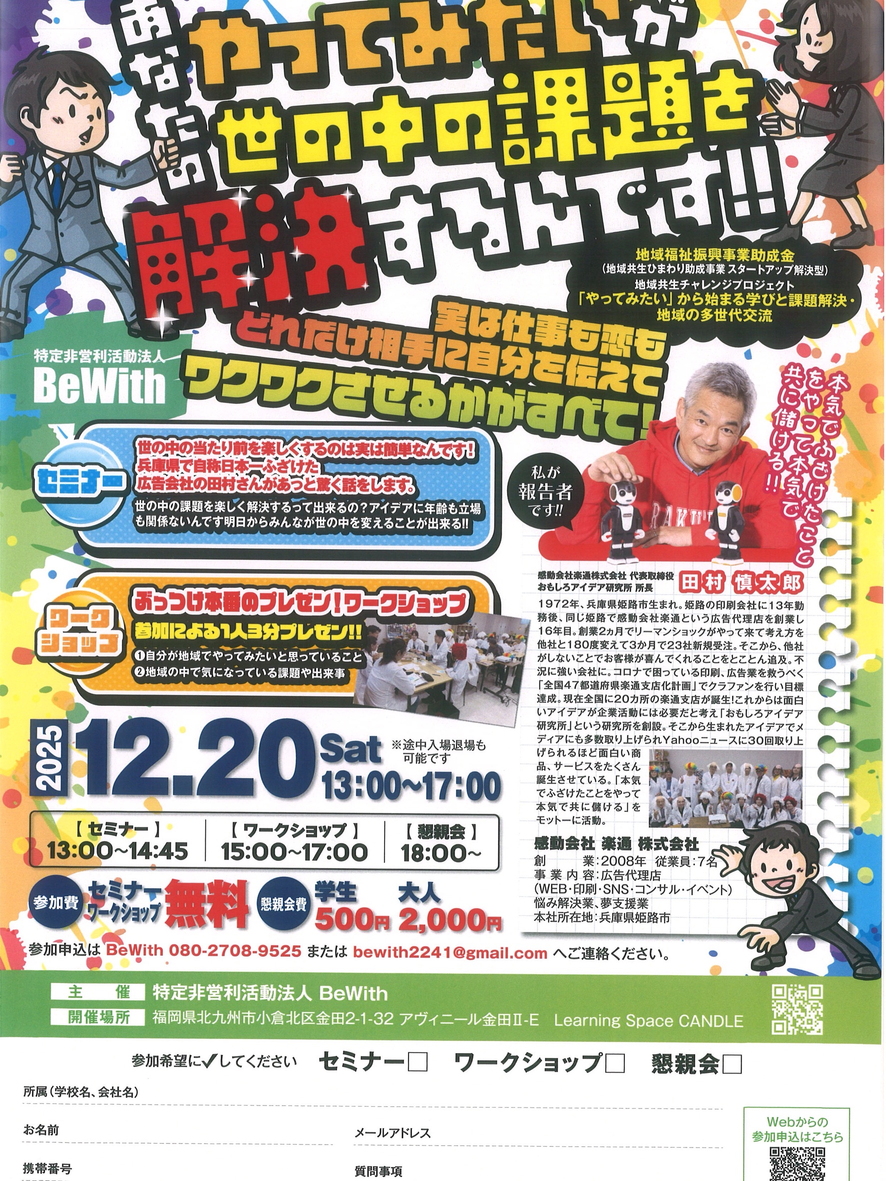 - 参加費:セミナー・ワークショップ 無料
